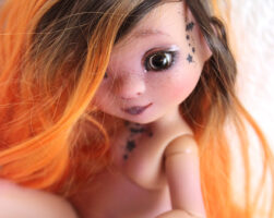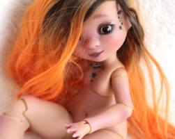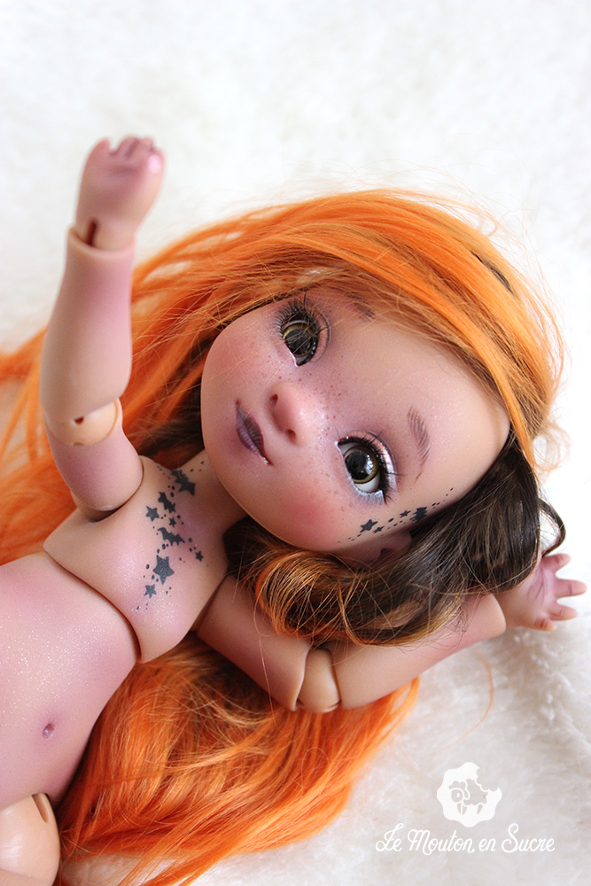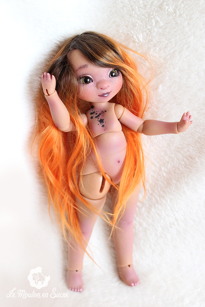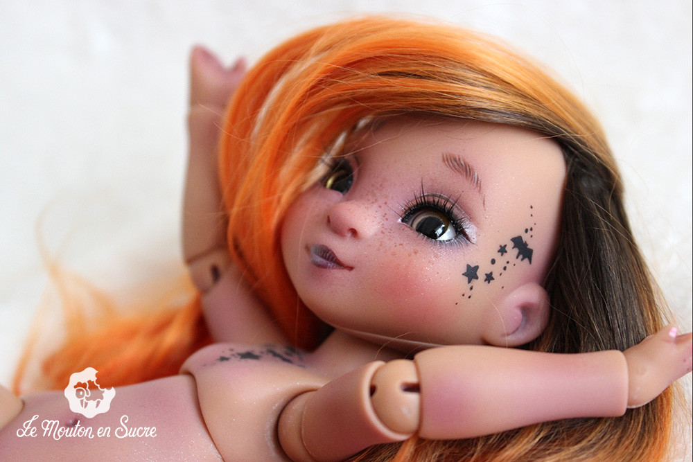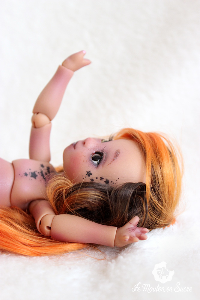 Cerise is a yoSD doll from La Compagnie des Radis. She’s a very cute bjd and poses very well. She’s the evolved version of the bjd Paupiette by the same artist, and here you see her with a little witch look.