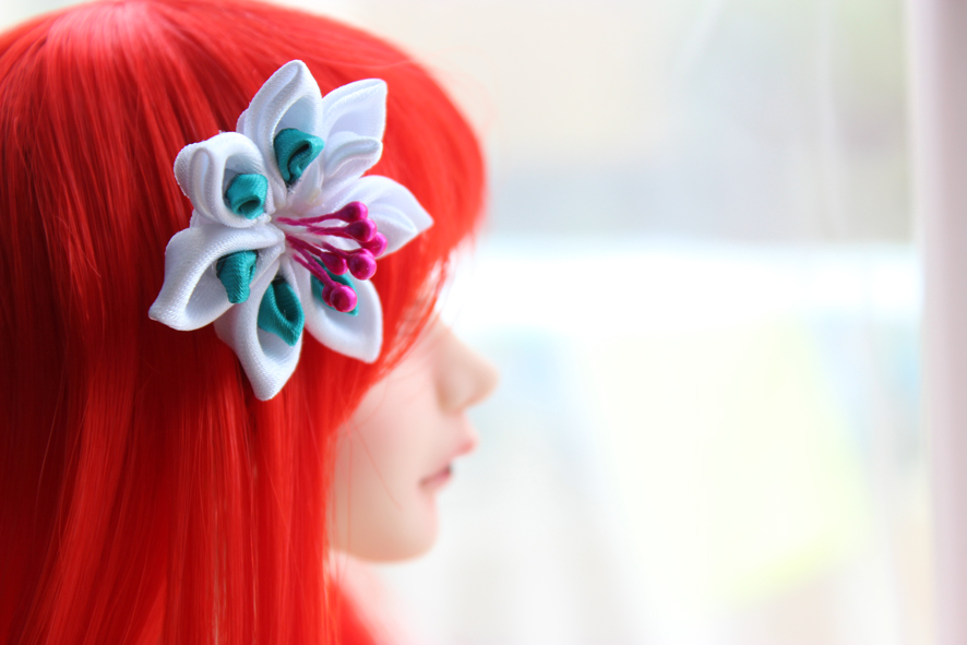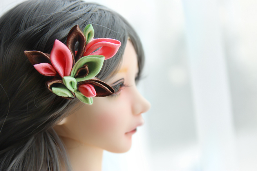 Hair accessories, BJD : headbands, pins… all in the kanzashi style, made by hand for doll size.