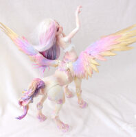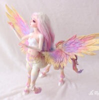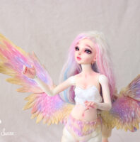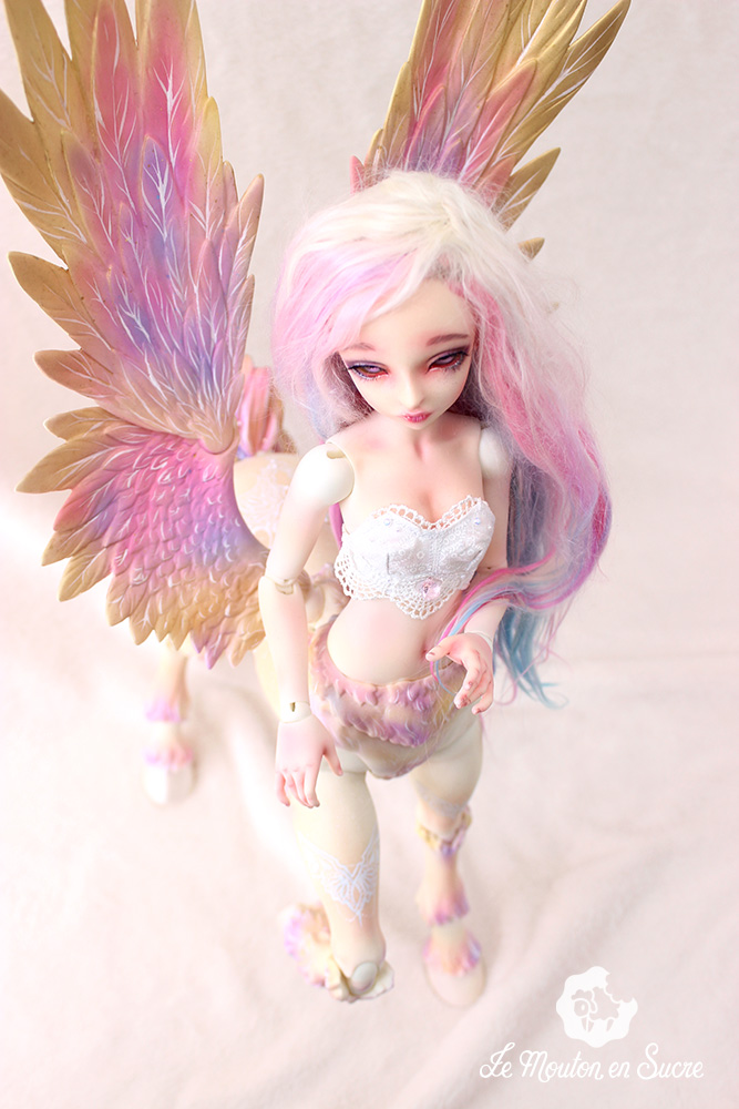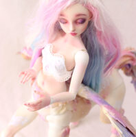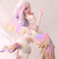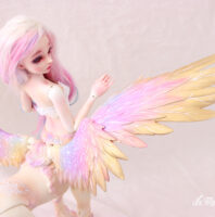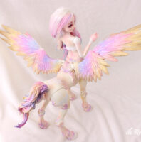 Fairyland had the idea of mixing human bjd with its animal creations. The result is hybrid dolls of great majesty, with extremely fine, detailed parts and the appeal of the brand’s popular models. Here Lucywenn in her centaur version, with wings, for a unique and sumptuous bjd creature.