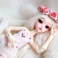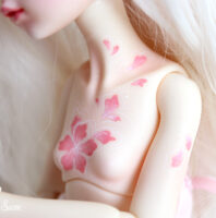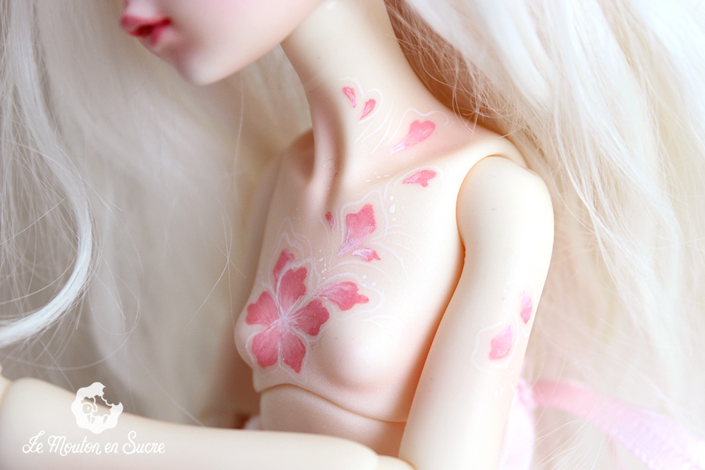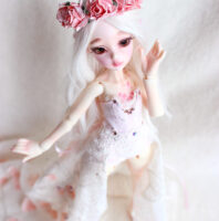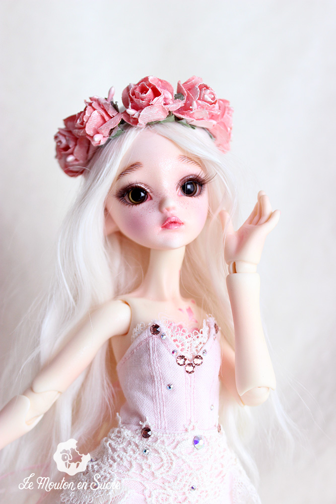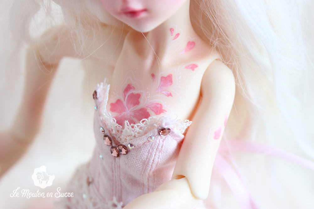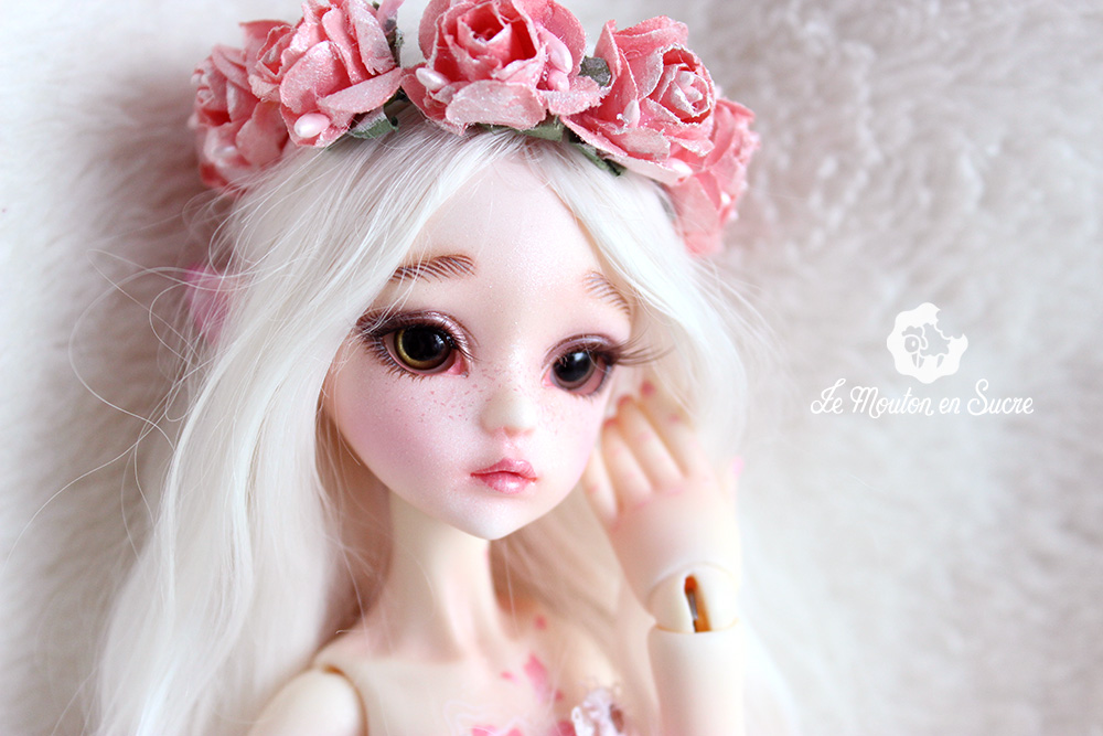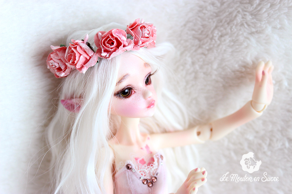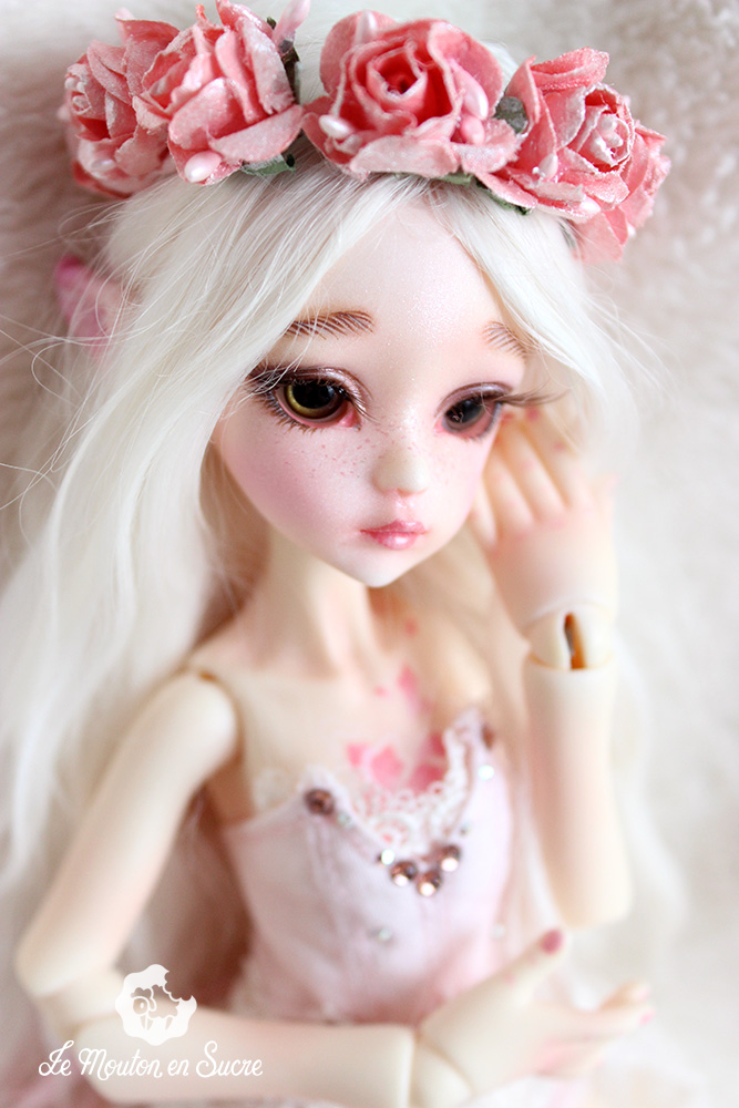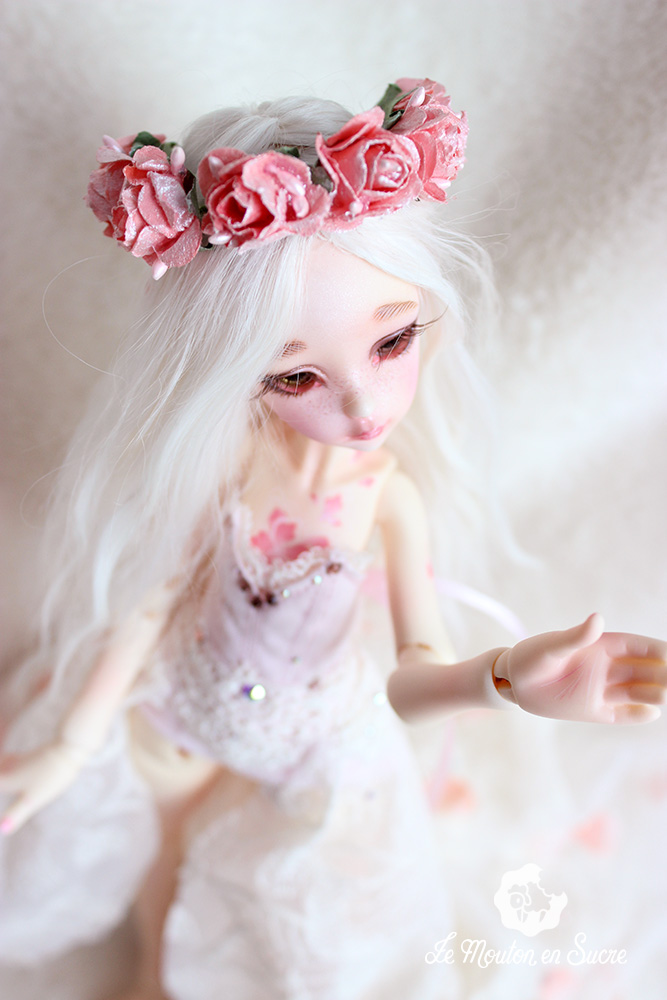 Neveu was made to be an iced style doll by the Dollzone Company. I was inspired by another theme, flowers, and makeup and resculpt some parts to fit this idea on this precious YoSd bjd.